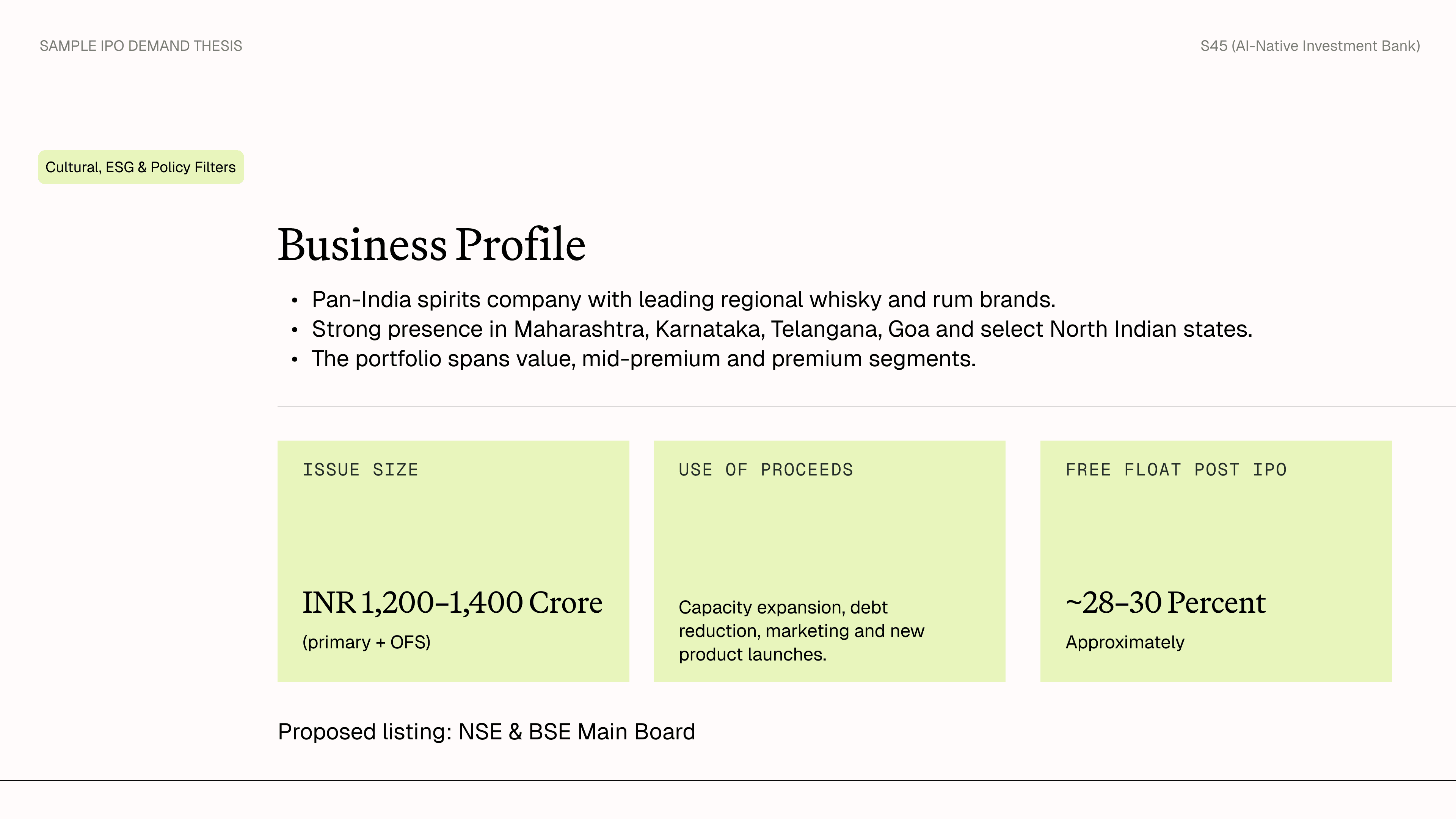 Delivery: PDF + spreadsheet pack, typically within 24 hours of receiving your inputs. If materials are insufficient for a meaningful thesis, we flag gaps and refund ₹13,449.